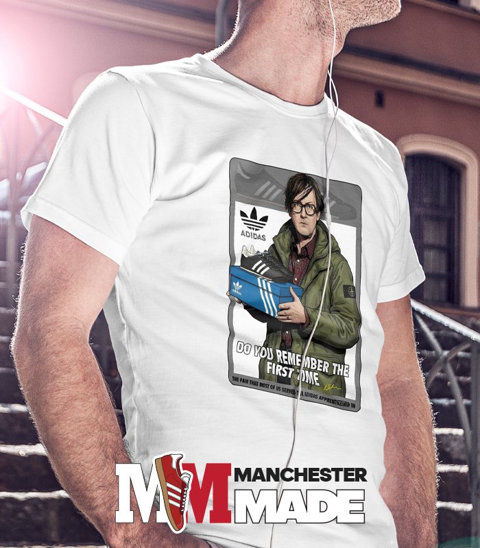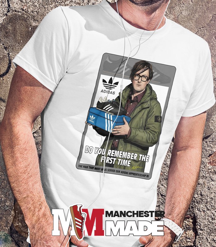 At the heart of this design is Jarvis Cocker, holding an Adidas box with the iconic Kiick sneakers perched on top—a playful nod to Pulp’s iconic song, “Do You Remember the First Time.” This piece captures the synergy between music and fashion, inviting fans to celebrate the milestones that connect both worlds. Whether you’re a die-hard fan of Jarvis Cocker or simply appreciate a creative concept, this t-shirt is a fantastic way to share your love for music and sneakers alike.