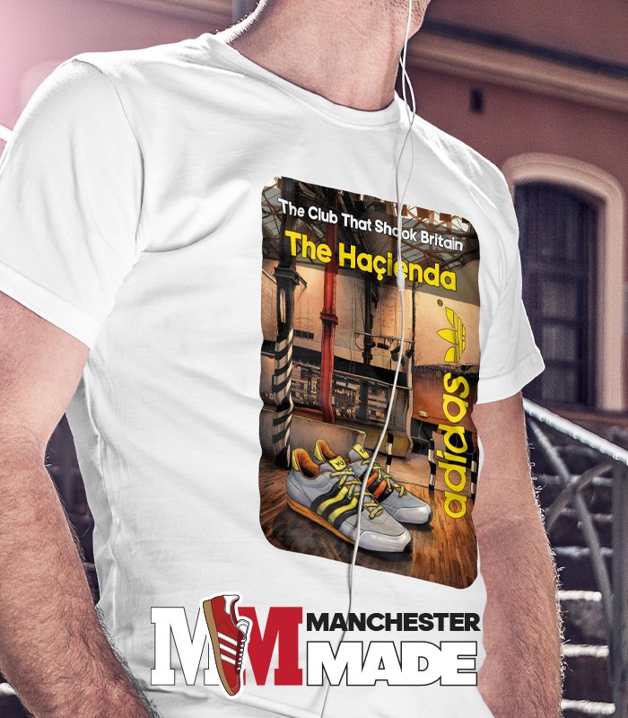 This design pays homage to the iconic Hacienda nightclub, a cultural cornerstone that emerged in Manchester during the early 1980s. Funded by the legendary band New Order and helmed by the visionary Tony Wilson, the Hacienda became a vibrant epicenter for live music, acid house, and the burgeoning rave scene, which profoundly influenced a generation of youth and reshaped Britain’s musical landscape. The image captures the electrifying atmosphere inside the venue, perfectly complemented by a pair of the distinctive Adidas Hacienda trainers, symbolizing not just a fashion statement but a connection to a rich musical heritage. By embracing this design, you are not just wearing a piece of footwear; you are stepping into a legacy that celebrates creativity, diversity, and the spirit of a transformative era. Join the movement and carry forward the essence of the Hacienda, ensuring that its powerful impact resonates with future generations.