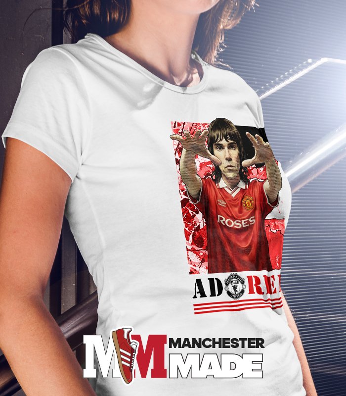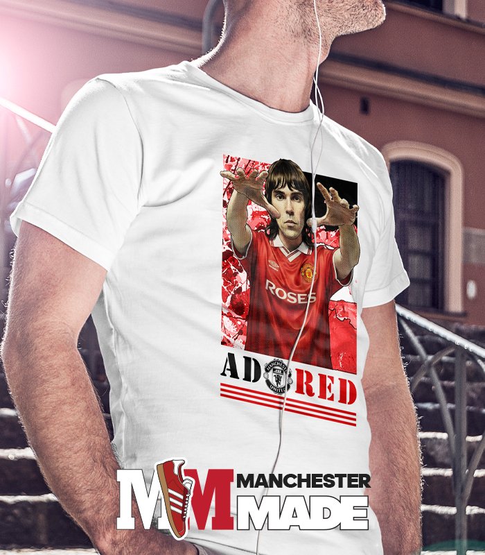 Imagine wearing a striking t-shirt that perfectly encapsulates the spirit of music and football, featuring the iconic lead singer of The Stone Roses, Ian Brown, proudly donned in a Manchester United shirt. This captivating design not only celebrates Brown’s undeniable passion for the legendary football club but also resonates deeply with fans who share his enthusiasm. Below the image, the word “ADORED” captures the fervor of his devotion, with the “O” cleverly transformed into the united badge, symbolizing loyalty and pride. The vibrant red of the “RED” section further emphasizes the essence of Manchester United, creating a visually appealing contrast against the black lettering. This t-shirt is not just an article of clothing; it’s a statement piece that merges the worlds of music and sports, making it a must-have for any true fan. By wearing this unique design, you’re not only showcasing your allegiance but also celebrating a cultural phenomenon that intertwines two beloved passions. Don’t miss the chance to express your admiration—this t-shirt is a perfect blend of style, pride, and fandom.