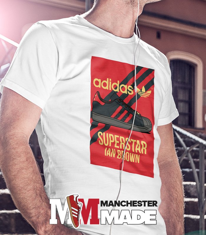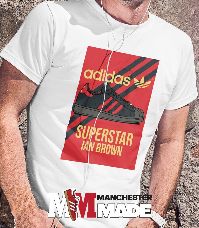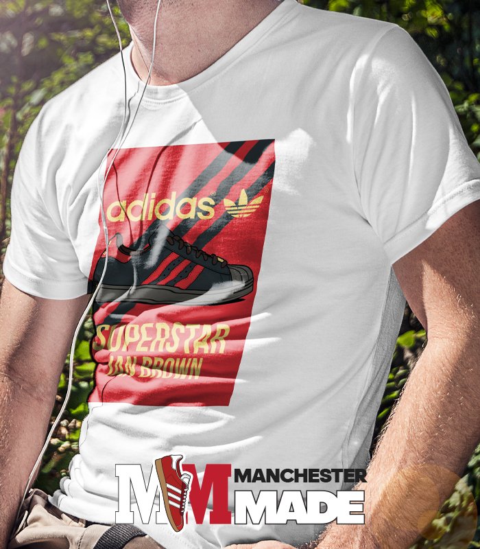 Imagine wearing a t-shirt that not only showcases your love for music but also pays homage to one of the most iconic trainers in sneaker history—the Adidas Ian Brown Superstar. This unique garment features a stunning hand-drawn illustration that captures the essence of the beloved sneaker, paired with the unmistakable Adidas logo and the bold text “SUPERSTAR IAN BROWN.” The solid background, adorned with three striking stripes that mirror the color scheme of the trainer, adds a touch of style that is both contemporary and nostalgic. This t-shirt is not just an article of clothing; it’s a statement piece that celebrates the fusion of fashion and music culture. By wearing this shirt, you not only express your individuality but also connect with fellow enthusiasts who appreciate the artistry behind both the footwear and the musical legacy of Ian Brown. Don’t miss the opportunity to own a piece of wearable art that embodies creativity and passion—grab your Adidas Ian Brown Superstar t-shirt today and step out in style!