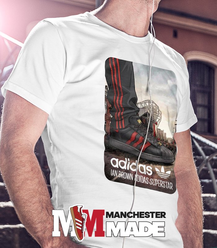 The adidas Manchester United Ian Brown t-shirt design is a striking homage to the legendary musician and his unwavering support for the iconic football club. Featuring a captivating close-up image of the Ian Brown adidas Superstar trainers, the design perfectly marries the realms of music and sport, creating a unique statement piece for fans and fashion enthusiasts alike. The backdrop of Manchester United’s historic Old Trafford stadium adds an extra layer of authenticity, evoking a sense of nostalgia and pride for supporters. This t-shirt is not just an article of clothing; it’s a powerful symbol of passion and camaraderie that resonates deeply within the hearts of fans. By wearing this exquisite design, you not only showcase your allegiance to Manchester United but also celebrate the cultural crossover that Ian Brown embodies. Don’t miss the opportunity to own a piece that encapsulates the spirit of both music and football, making it a must-have addition to any wardrobe.