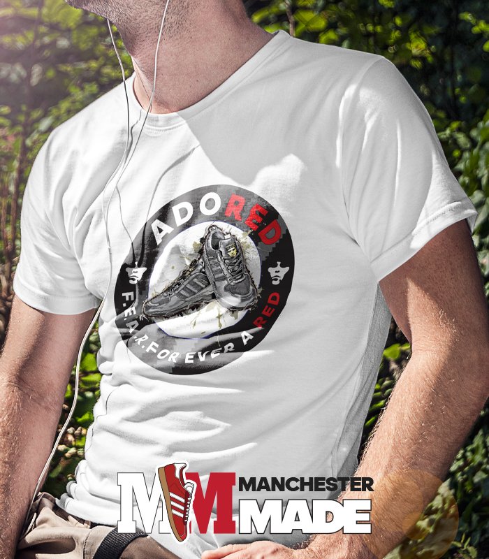 Introducing the Adidas Originals ZX Ian Brown Trainers Adored T-Shirt, a statement piece for true fans. This unique tee showcases hand-drawn Adidas Ian Brown ZX trainers, artfully positioned at the center of a striking circular design. Paying homage to Ian Brown, the iconic frontman of The Stone Roses and a die-hard Manchester United fan, the shirt features the word ‘Adored’ in bold. The word ‘Red’ within ‘Adored’ is distinctively highlighted in red, symbolizing Ian’s unwavering support for the legendary team. Crafted for those who appreciate the fusion of music, style, and sports, this t-shirt is more than just apparel—it’s a tribute. Elevate your wardrobe with this exclusive piece and show your allegiance with pride.