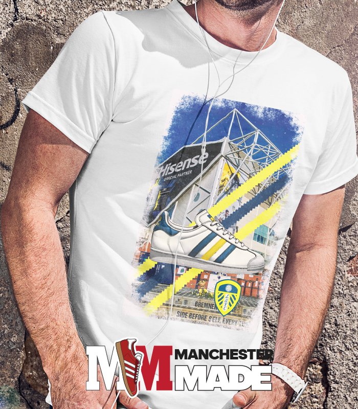 Adidas Gazelle trainer t-shirt in Leeds United club colours